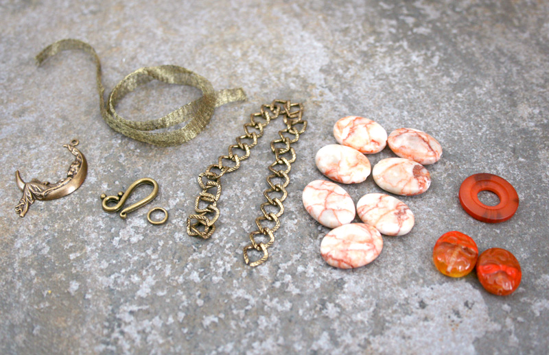 Kathy, sent me. Don't you just love those bronze pieces and that stone?! And the round piece on the right? From her button collection. AND Czech glass beads!? Love.